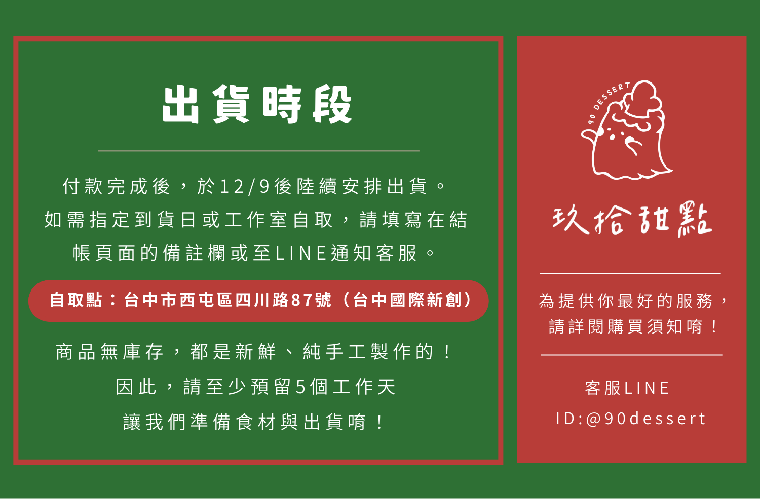 提醒:如需指定到貨時間,請務必於訂單備註,或至LINE通知客服。