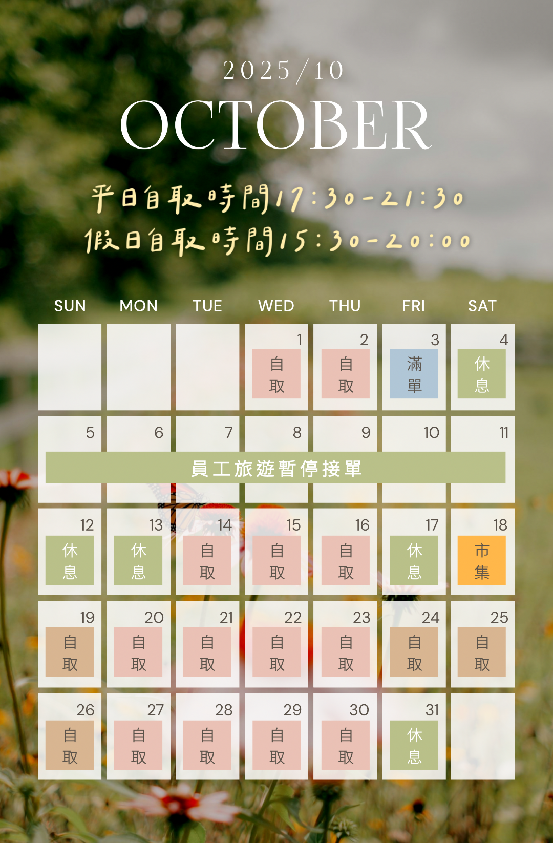 本月自取時間與地址